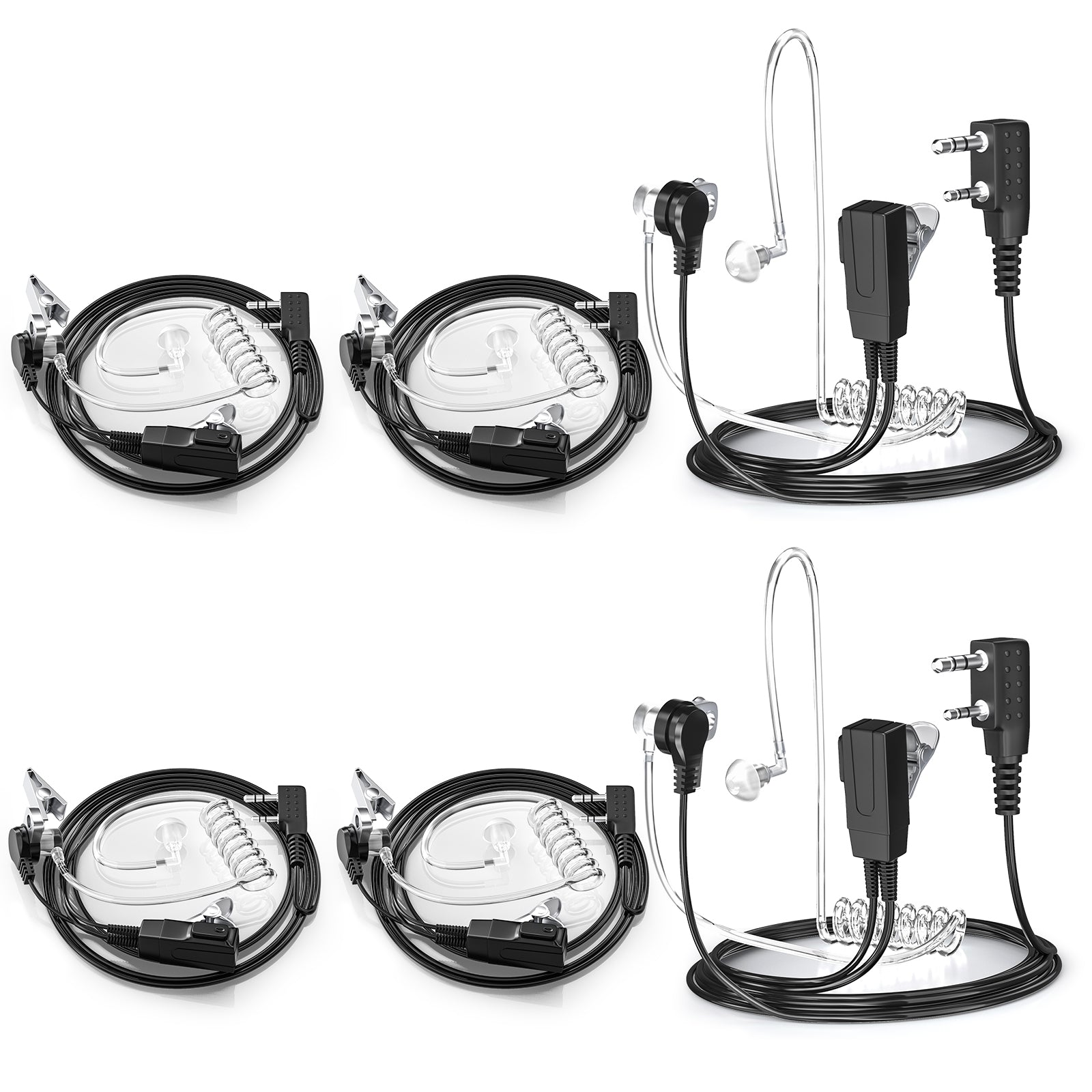 2-Pin Walkie Talkie Earpiece (6-Pack) – Acoustic Tube Headset with Mic & PTT
